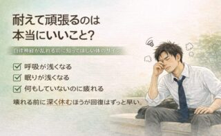 整体について耐えて頑張るのは本当にいいこと? 耐えて頑張るのは本当にいいこと?サウナ好きにこそ知ってほしい、自律神経が乱れる前の体のサイン。呼吸が浅い・眠りが浅い・慢性的な疲労は“頑張りすぎ”のサインかもしれません。2026.02.22整体について整体院の院長として